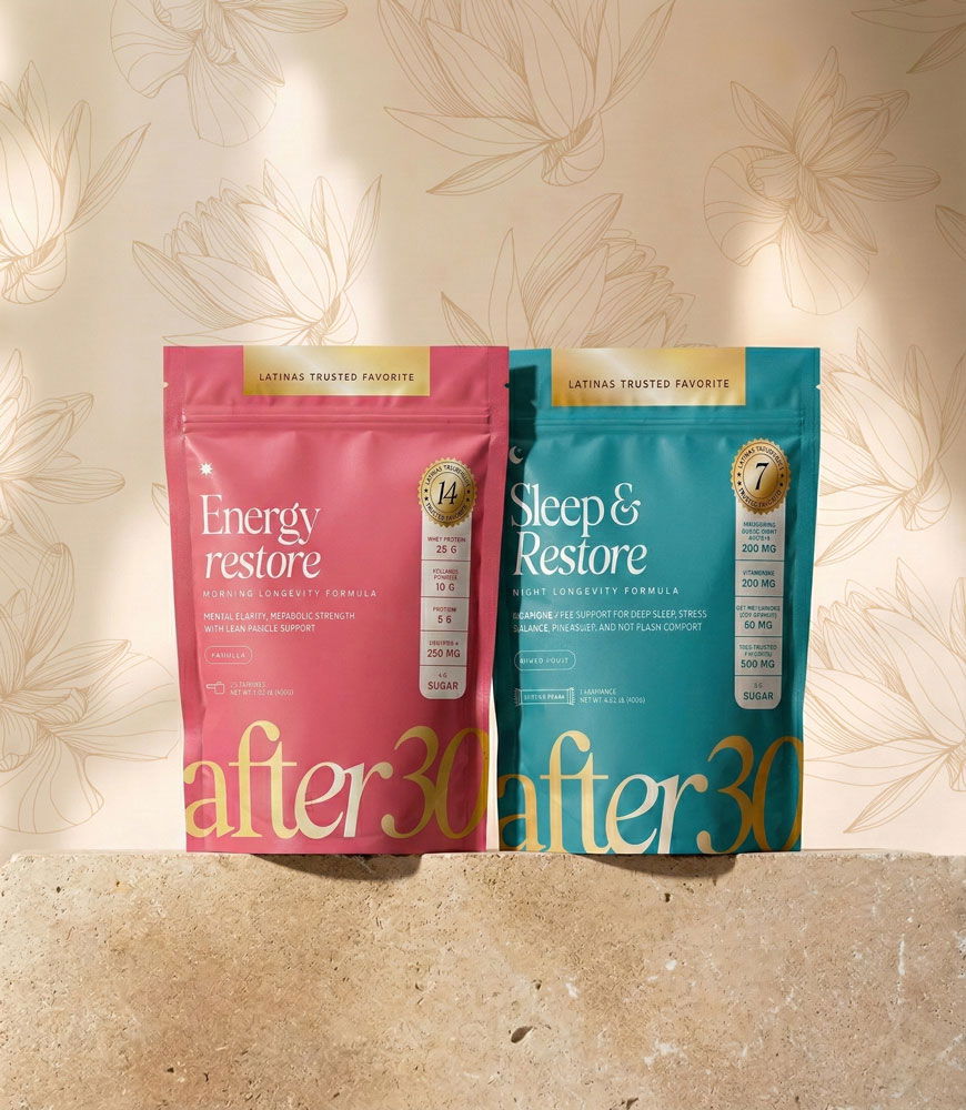 Instead of layering 14–20 pills a day, After 30 simplifies what your body actually needs into two targeted moments: